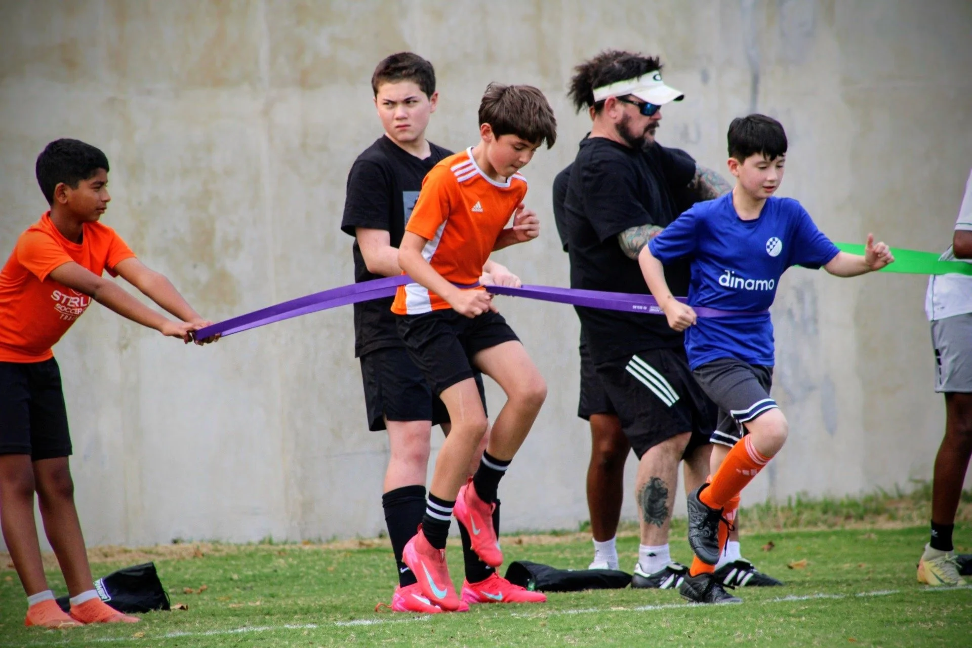 Our program is designed to help athletes become faster and more explosive by developing strength, power, and speed while incorporating injury-prevention strategies. The goal is to maximize athletic performance on the field. The program is tailored for athletes ages 10–18+ with a focus on soccer players of all positions. Our guiding principle is progressive overload within a planned program that respects the athlete’s seasonal schedule. This approach helps prevent fatigue and burnout while ensuring consistent progress. Younger athletes (10–14): Focus on building a strong foundation of movement quality, coordination, and good training habits. Older athletes (15+): Training shifts toward performance-driven outcomes: explosive strength, speed, high-intensity conditioning, and in-game endurance. The strength component of the program follows a well-rounded athletic model that emphasizes functional strength to support peak athletic performance. Program Structure (Periodization Model) Pre-Season: • Build higher strength and conditioning capacity. • Emphasis on heavy loads and higher reps to establish a benchmark for the season. In-Season: • Focus shifts to maintaining strength while reducing training stress. • Lower reps, lighter loads, increased attention to mobility and injury prevention. Goal: athletes reach peak performance during the final weeks and competitive tournaments. Recommended Frequency: 2 sessions per week for optimal speed and strength development.